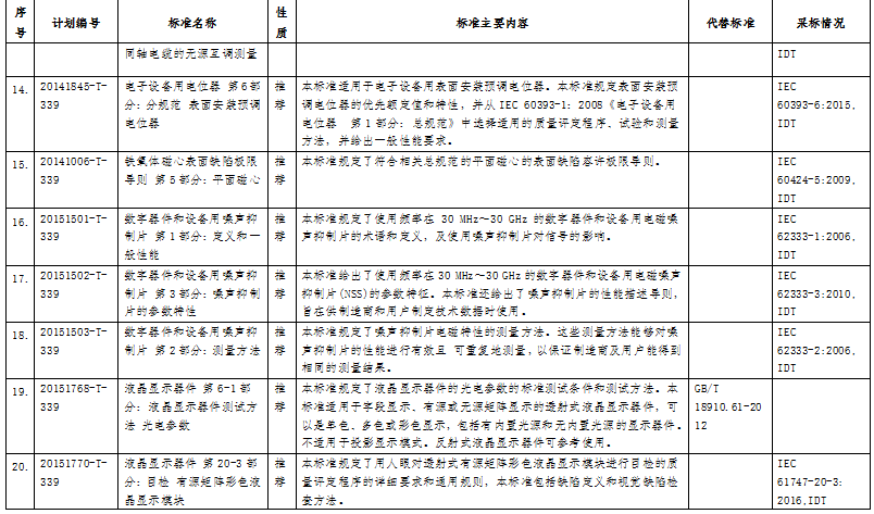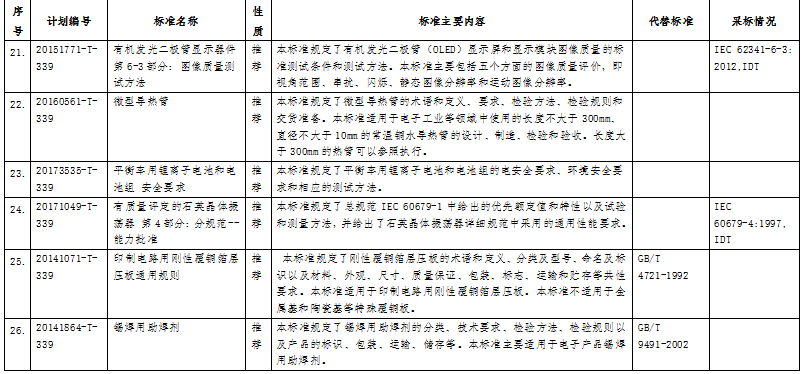 電子行業(yè)14項(xiàng)行業(yè)標(biāo)準(zhǔn)和26項(xiàng)國(guó)家標(biāo)準(zhǔn)報(bào)批公示