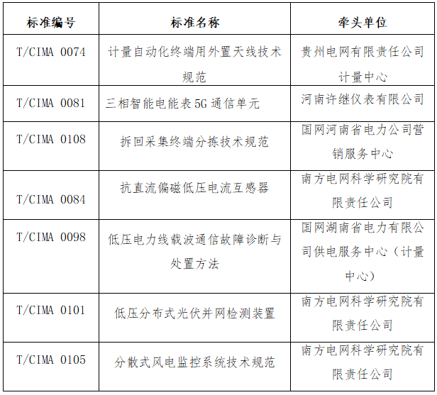 2024年4月 22-23日,中國儀器儀表行業(yè)協(xié)會(以下簡稱“協(xié)會”) 以視頻會議形式組織召開了《計量自動化終端用外置天線技術(shù)規(guī)范》等7項團體標準(項目信息詳見附表)送審稿審查會。來自國網(wǎng)山東省電力公司電力科學研究院、廣東電網(wǎng)有限責任公司計量中心、河南省計量科學研究院、國網(wǎng)計量中心有限公司、國網(wǎng)湖北省電力有限公司電力科學研究院、國網(wǎng)河南省電力公司營銷服務中心(計量中心)、國網(wǎng)山東省電力公司、國網(wǎng)重慶市電力公司營銷服務中心、黑龍江省電工儀器儀表工程技術(shù)研究中心有限公司的九位專家組成審查組,國網(wǎng)山東省電力公司電力科學研究院的徐民教授級高工擔任組長。會議由協(xié)會副秘書長程紅主持。協(xié)會及電工儀表分會的團體標準工作人員、標準主要起草人參加了本次會議。