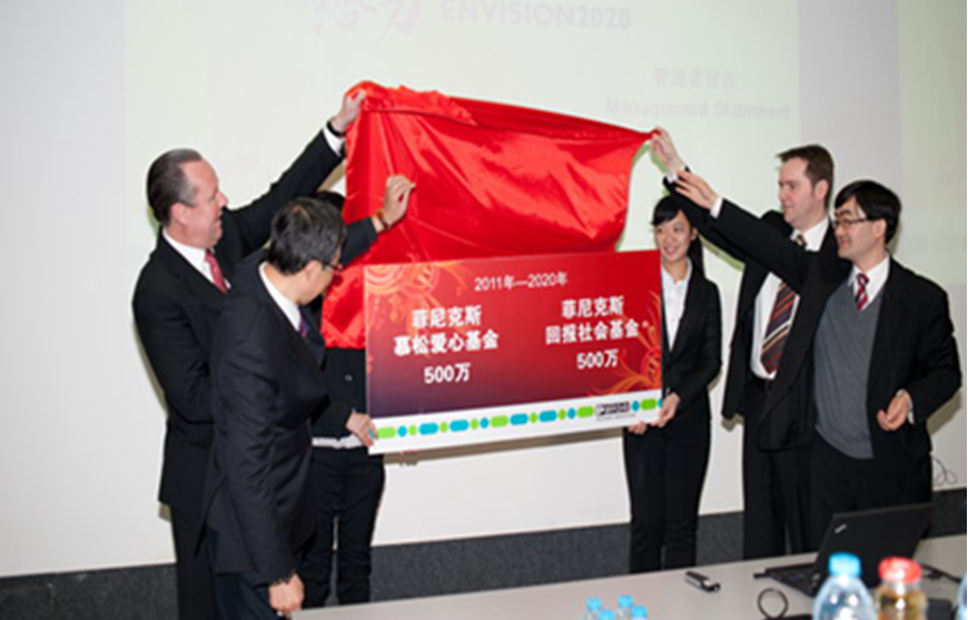 力所能及回報社會,做優(yōu)秀企業(yè)公民。秉承“雪中送炭,做優(yōu)秀企業(yè)公民”的理念,菲尼克斯電氣成立回報社會基金和慕松愛心基金,勇于肩負社會責(zé)任。于內(nèi),關(guān)注員工工作和生活,對于因重大變故導(dǎo)致困難的員工家庭,開展應(yīng)急救助;于外,從1994年開始關(guān)注希望工程,隨后陸續(xù)在全國援建8所菲尼克斯希望小學(xué),支持2所西藏那曲地區(qū)貧困小學(xué);從1995年開始關(guān)注南京兒童福利院,2009年開始關(guān)注高淳社會福利院;2001年開始陸續(xù)在10余所大學(xué)設(shè)立獎學(xué)金以及建立實驗室;傾力支持抗震救災(zāi)(2008年汶川地震、2009年玉樹地震、2013年雅安地震);2009年開始支持大學(xué)生圓夢行動,累計支持超過400名大學(xué)生入學(xué);2014年開始支持普方協(xié)會孩子完成學(xué)業(yè);2020年為湖北和南京的醫(yī)院捐贈款項和醫(yī)用物資,為武漢雷神山醫(yī)院捐贈急需的電氣產(chǎn)品,為德國華僑贈送防護物品,全力抗擊新冠疫情;2021年為支持河南抗洪救災(zāi)……菲尼克斯電氣勇?lián)鐣?zé)任從未止步!