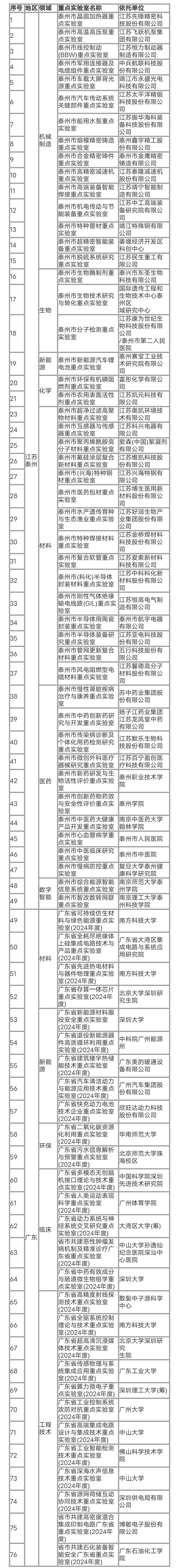 2024年重點實驗室立項建設項目名單