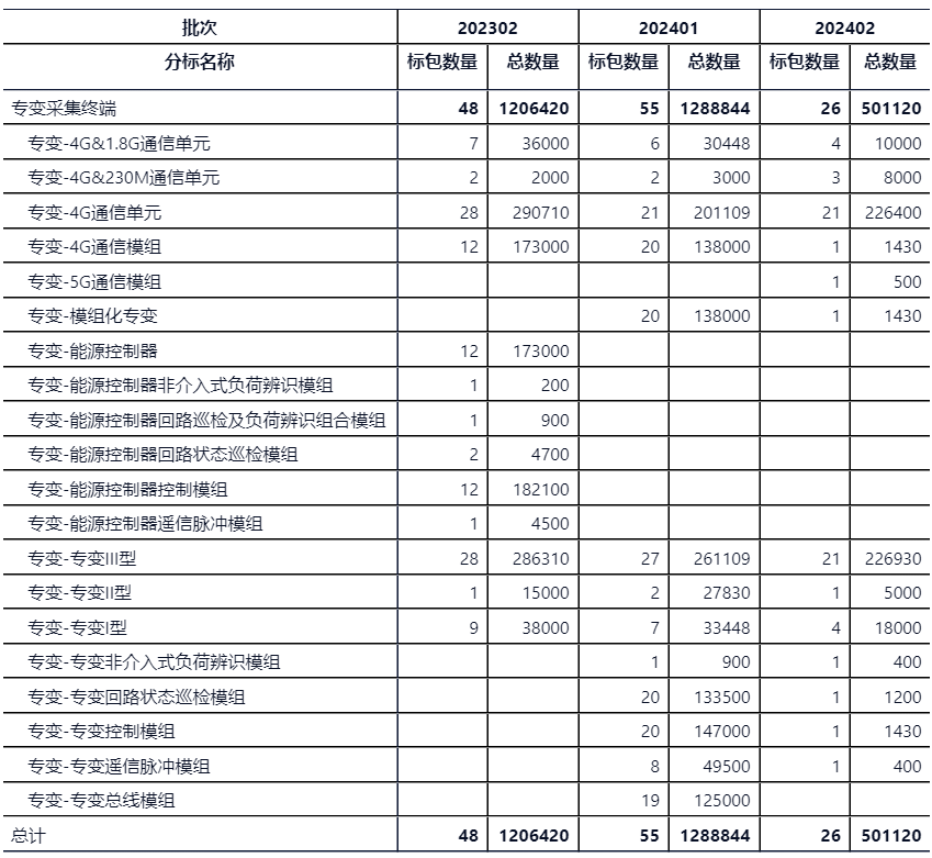 專變分標(biāo)總數(shù)量50.11萬(wàn)只、26個(gè)標(biāo)包。