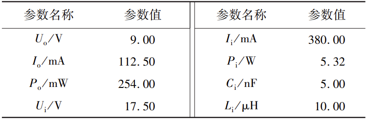 表3中:Uo為最大輸出電壓;Io為最大輸出電流;Po為最大輸出功率。