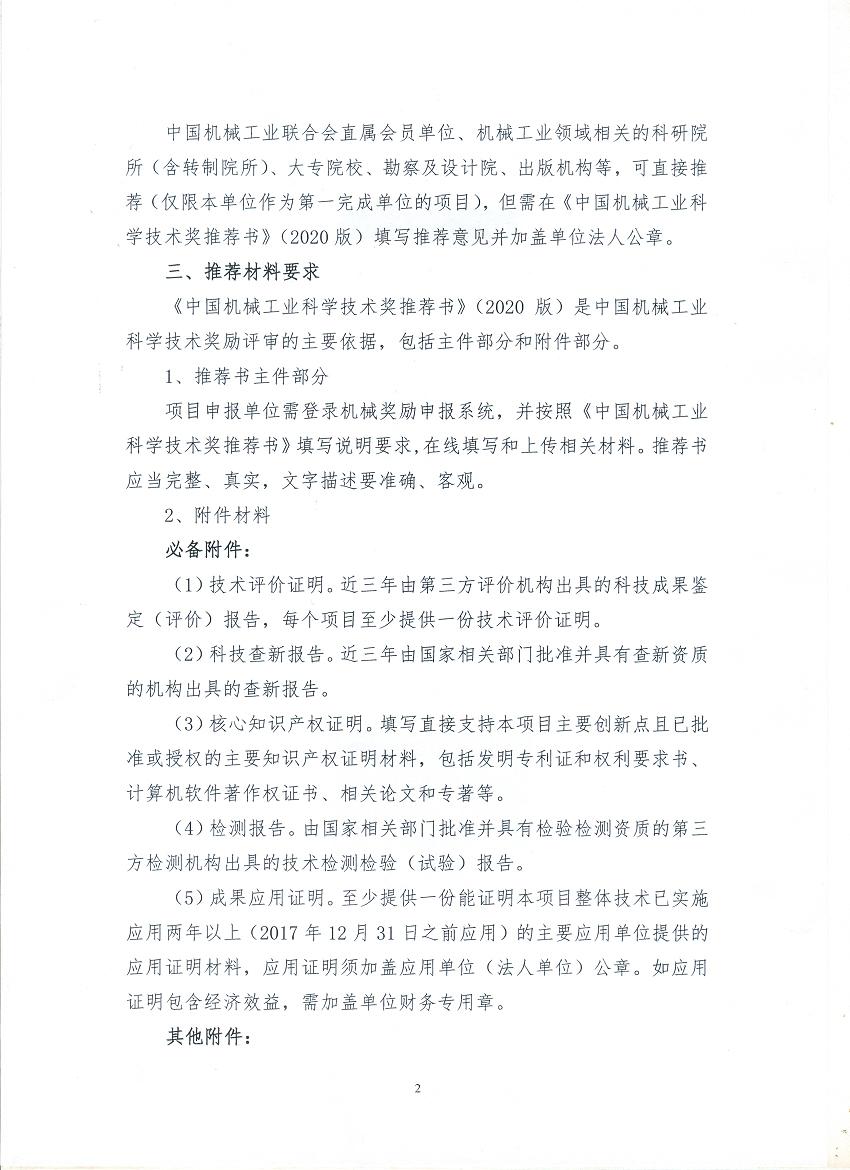 附件:關于開展中國機械工業科學技術獎推薦工作的通知