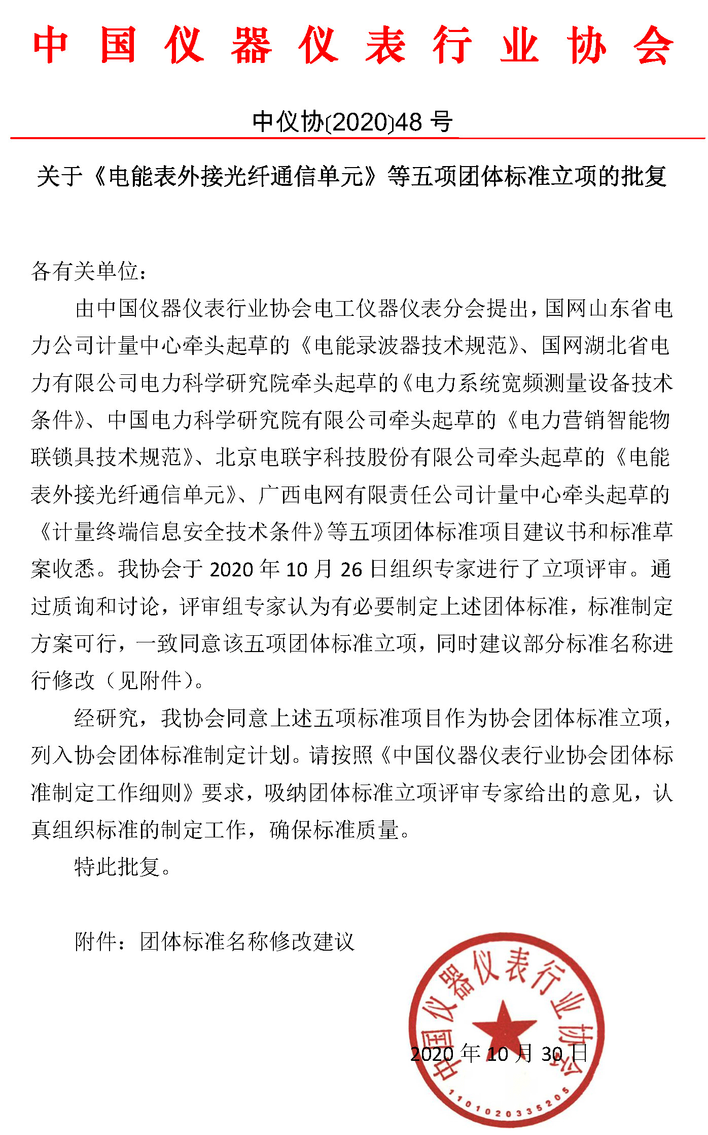 附件:1、關于《電能表外接光纖通信單元》等五項團體標準立項的批復.pdf