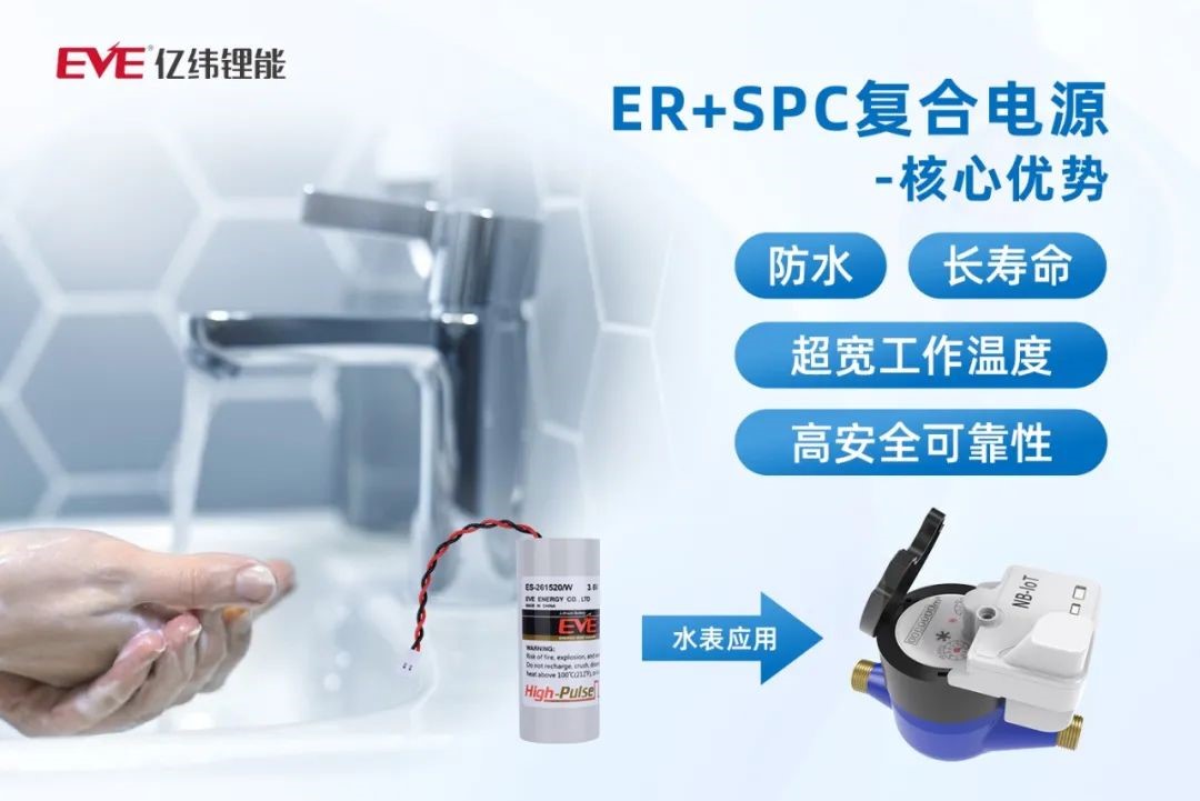 億緯鋰能擁有智能水表全系列解決方案,包括ER、CR、ES復(fù)合電源,其中,由億緯鋰能自主創(chuàng)新研發(fā)的ES復(fù)合電源方案,兼顧了鋰亞電池長壽命、電池電容器輸出大脈沖的優(yōu)勢,有效地保障水表更穩(wěn)定、精確、長壽命運(yùn)行,且采用獨(dú)特的電池組灌膠工藝,可以滿足水浸場景應(yīng)用。