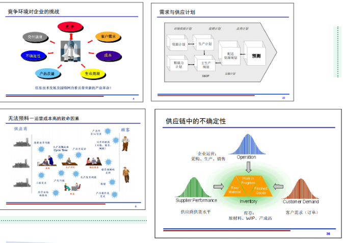史老師從企業(yè)在經(jīng)營上經(jīng)常遇到的問題入手,分析了運營成本高的致命因素,指出供應(yīng)鏈管理的核心問題就是在提供超常的客戶價值上幫助企業(yè)創(chuàng)造競爭優(yōu)勢。在內(nèi)部供應(yīng)鏈部分,史老師犀利的指出,傳統(tǒng)的內(nèi)部供應(yīng)鏈沒有用系統(tǒng)和整體的視角產(chǎn)生總體相關(guān)價值。外部供應(yīng)鏈部分,他指出,從供應(yīng)商到制造商、到配送、到最終用戶,各個環(huán)節(jié)信息的畸變,導(dǎo)致需求的難以預(yù)測,不能讓生產(chǎn)者對庫存、產(chǎn)能等做出準(zhǔn)確的判斷。因此需要一套技術(shù)環(huán)境,來集成“需方”和“供方”的流程,從而減少庫存水平、縮短供應(yīng)鏈周期、降低供應(yīng)鏈成本。史老師在課堂上還分享了戰(zhàn)略尋源管理、供應(yīng)商管理總流程,還向大家展示了通過功能和戰(zhàn)略兩個層面的聯(lián)盟達到改進與客戶伙伴關(guān)系的方法。對于供應(yīng)鏈中的一些不確定性,史老師也從評估風(fēng)險發(fā)生可能性、識別風(fēng)險來源和評估風(fēng)險影響等幾個角度講解,并給出了風(fēng)險管理的策略和應(yīng)對供應(yīng)鏈風(fēng)險的反應(yīng)機制。最后史老師用典型案例詮釋了什么是最佳的供應(yīng)鏈管理。