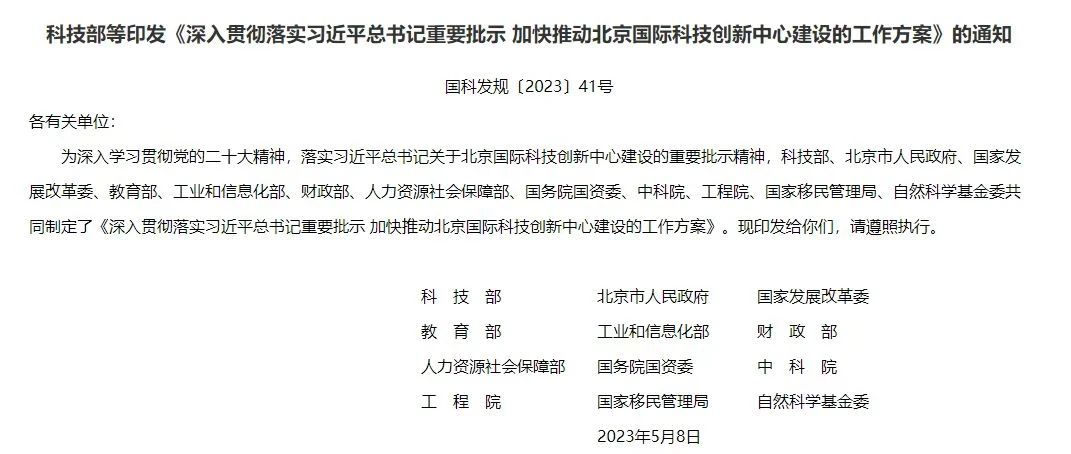 科技部等12部門:加快推動北京國際科技創新中心建設