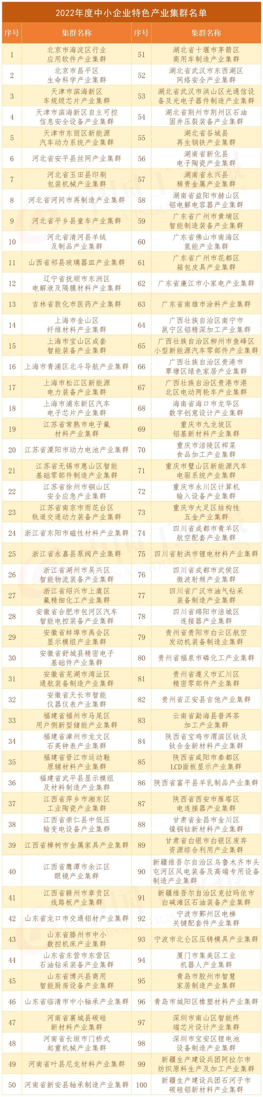 據(jù)悉,2023年,工業(yè)和信息化部還將在全國(guó)范圍內(nèi)再培育100個(gè)左右中小企業(yè)特色產(chǎn)業(yè)集群,推動(dòng)各地圍繞加快數(shù)字化、綠色化轉(zhuǎn)型,提升治理和服務(wù)能力等方面加大培育力度。