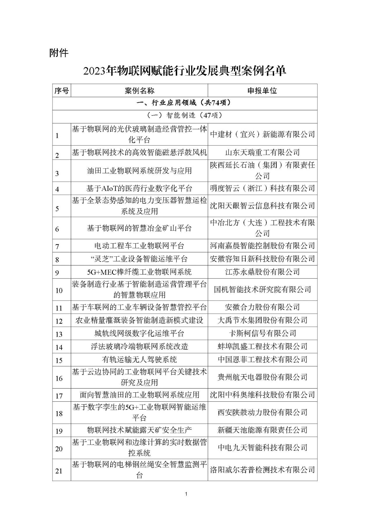 附件:2023年物聯網賦能行業發展典型案例名單