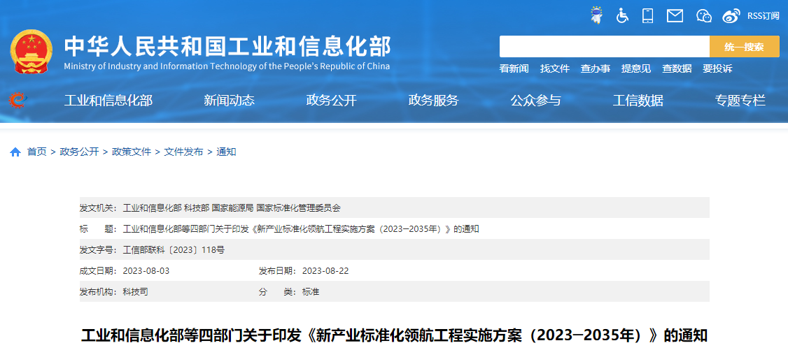 工業(yè)和信息化部等四部門關于印發(fā)《新產(chǎn)業(yè)標準化領航工程實施方案(2023─2035年)》的通知