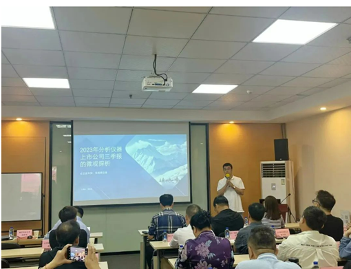 隨后,代理商分會副理事長林欣田作了題為“2023年分析儀器上市公司三季報的微觀探析”的分享。他從銷售額、管理與經(jīng)營和供應(yīng)鏈三個方面對分析儀器產(chǎn)業(yè)鏈相關(guān)的部分上市公司進行了深入分析,通過第三季度財報數(shù)據(jù)來探究中國及國際分析儀器行業(yè)市場的發(fā)展情況及未來前景。