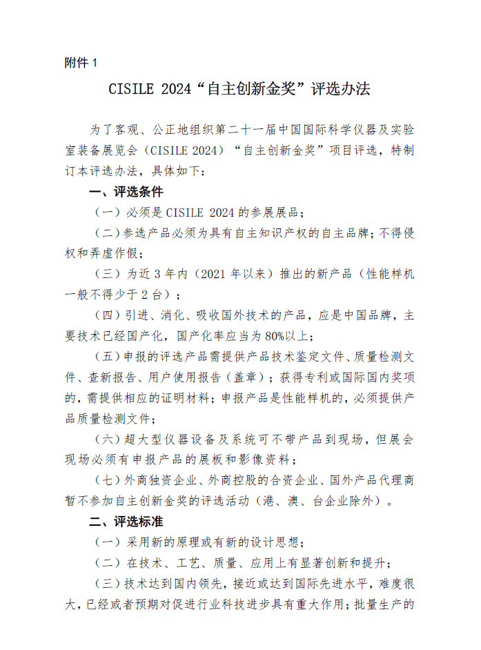1.CISILE 2024“自主創(chuàng)新金獎(jiǎng)”通知原文及評(píng)選辦法