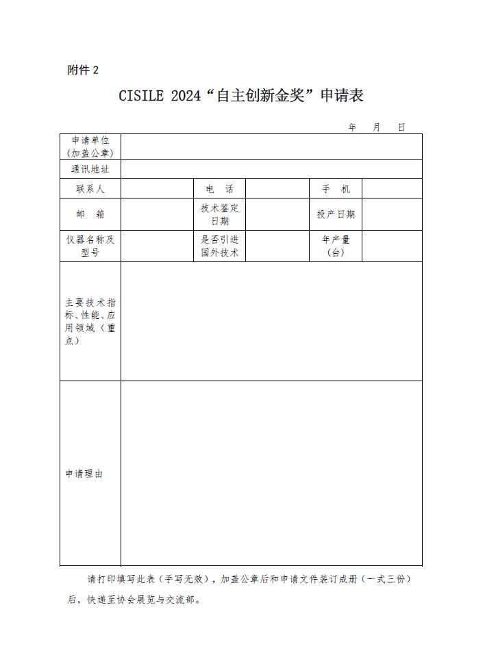 2.CISILE 2024“自主創(chuàng)新金獎(jiǎng)”申請(qǐng)表