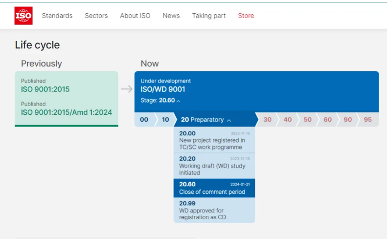 會(huì)議確定ISO 9001標(biāo)準(zhǔn)的修訂從2024年1月開始,將包括WD(Working Draft)、CD( Committee Draft)、DIS(Draft for International Standard)和FDIS(Final Draft for International Standard)四個(gè)階段。