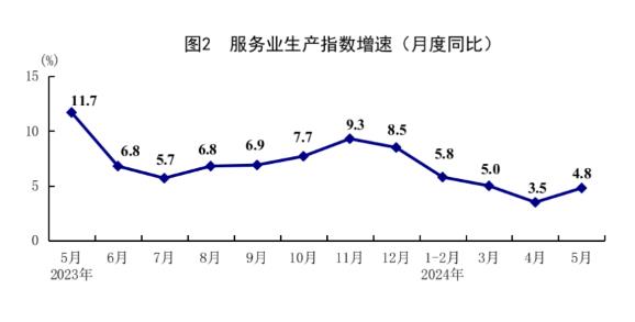 5月份,全國(guó)服務(wù)業(yè)生產(chǎn)指數(shù)同比增長(zhǎng)4.8%,比上月加快1.3個(gè)百分點(diǎn)。分行業(yè)看,信息傳輸、軟件和信息技術(shù)服務(wù)業(yè),租賃和商務(wù)服務(wù)業(yè),交通運(yùn)輸、倉(cāng)儲(chǔ)和郵政業(yè),批發(fā)和零售業(yè)生產(chǎn)指數(shù)同比分別增長(zhǎng)12.9%、8.8%、5.6%、5.0%,分別比上月加快2.1、2.7、1.3和1.5個(gè)百分點(diǎn)。1-5月份,全國(guó)服務(wù)業(yè)生產(chǎn)指數(shù)同比增長(zhǎng)5.0%。1-4月份,規(guī)模以上服務(wù)業(yè)企業(yè)營(yíng)業(yè)收入同比增長(zhǎng)8.2%。5月份,服務(wù)業(yè)商務(wù)活動(dòng)指數(shù)為50.5%;服務(wù)業(yè)業(yè)務(wù)活動(dòng)預(yù)期指數(shù)為57.0%。其中,郵政、電信廣播電視及衛(wèi)星傳輸服務(wù)、互聯(lián)網(wǎng)軟件及信息技術(shù)服務(wù)、文化體育娛樂(lè)等行業(yè)商務(wù)活動(dòng)指數(shù)位于55.0%以上較高景氣區(qū)間。