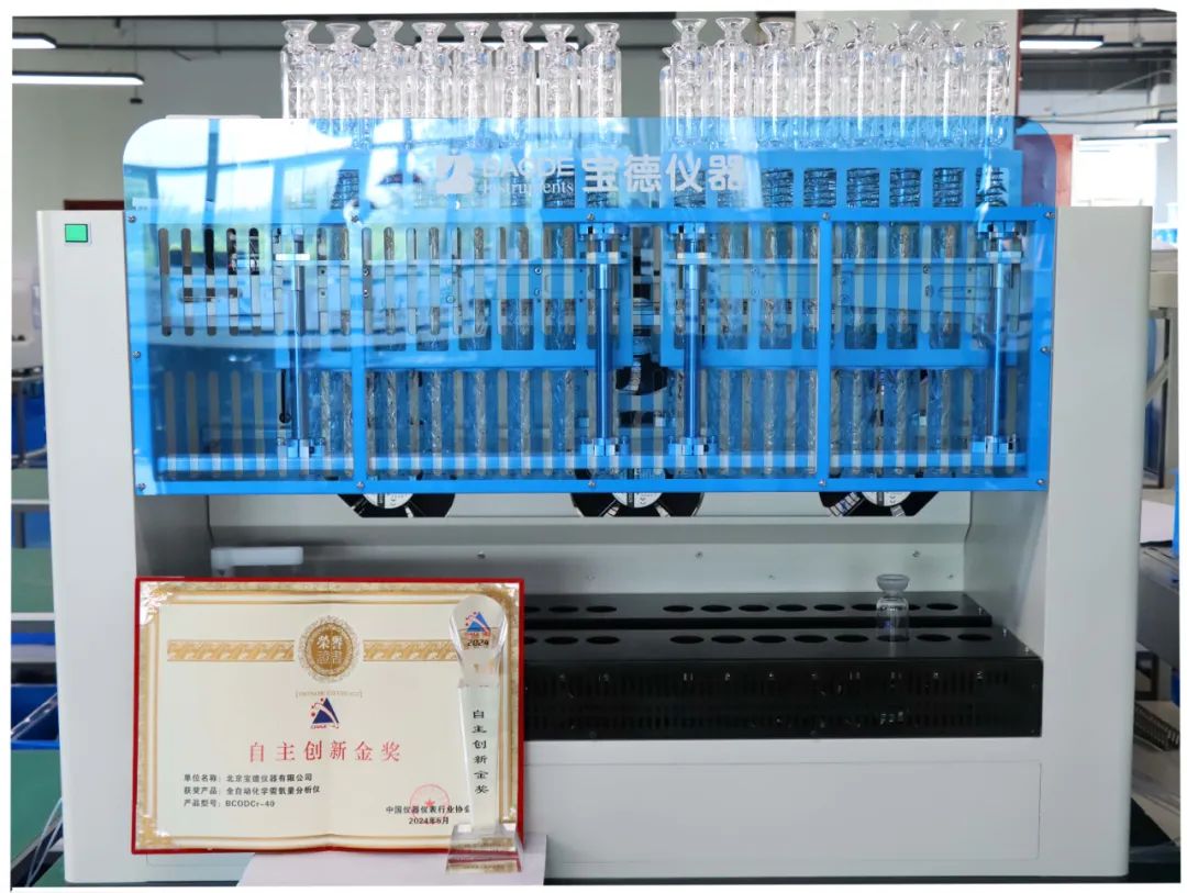 在本年度的評選中,北京寶德儀器有限公司(以下簡稱寶德儀器)自主研制的BCODCr-40 全自動化學需氧量(重鉻酸鹽法)分析儀榮獲自主創新金獎
