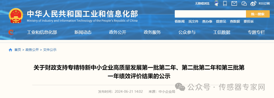 621日,工信部公示財政支持專精特新中小企業高質量發展第一批第二年、第二批第二年和第三批第一年績效評價結果,共計1188家。公示時間為2024621日至627日。