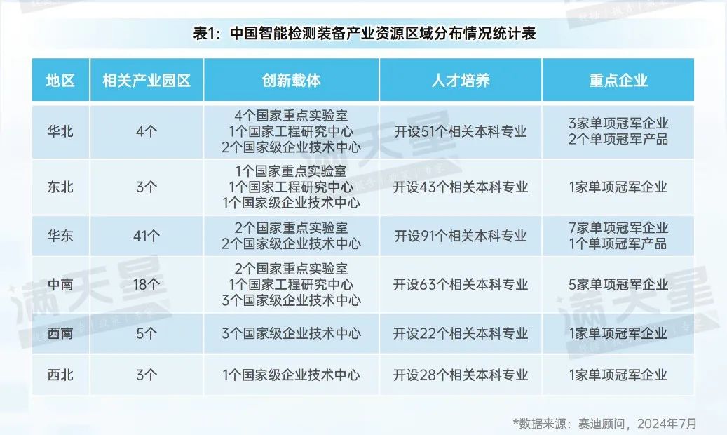 表1:中國智能檢測裝備產(chǎn)業(yè)資源區(qū)域分布情況統(tǒng)計(jì)表