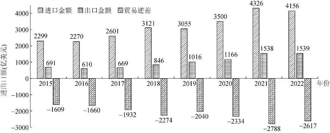 2:2016—2022年中國集成電路產業進出口額