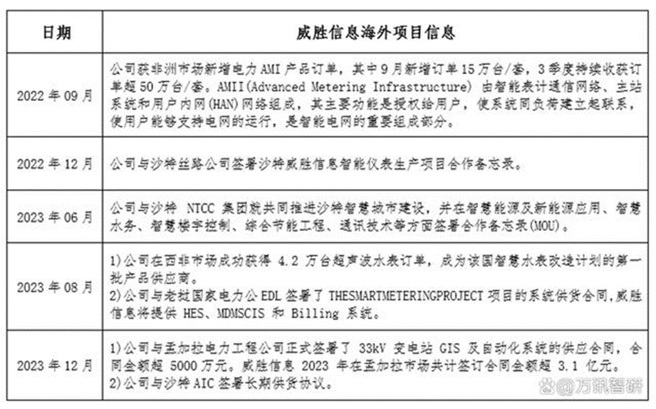 2022-2023年,威勝信息獲得的海外項(xiàng)目信息主要如下。