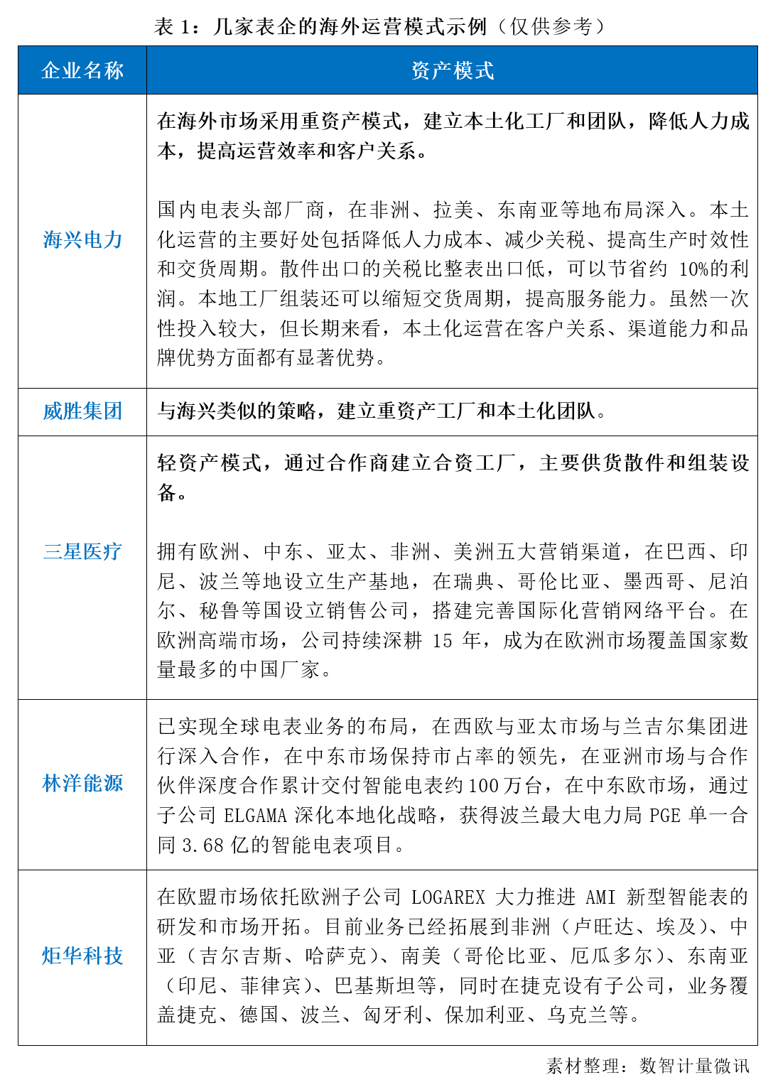 在海外市場(chǎng)頗有建樹(shù)的幾家龍頭表企,有的采用重資產(chǎn)模式,建立本土化工廠和團(tuán)隊(duì);有的采用輕資產(chǎn)模式,與合作伙伴合資;有的收購(gòu)并購(gòu),建有辦事處或子公司。走得最遠(yuǎn)的在出海3.0階段。
