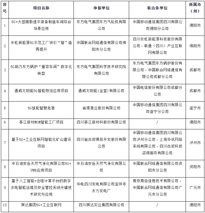 3、2023年四川省“5G工業(yè)互聯(lián)網(wǎng)”標(biāo)桿項(xiàng)目