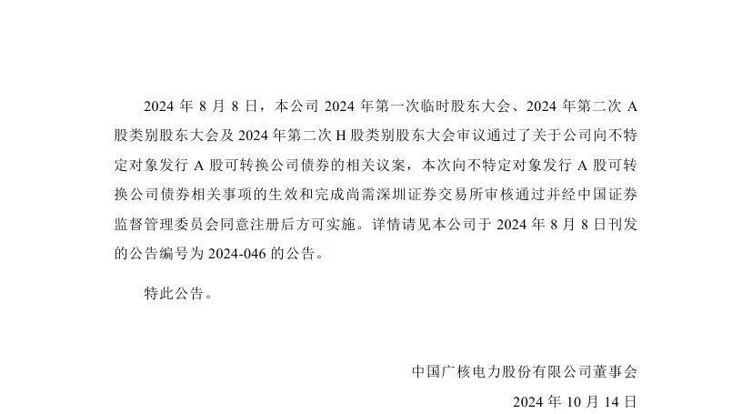 據(jù)悉,中國(guó)廣核近日披露2024年第三季度運(yùn)營(yíng)情況。