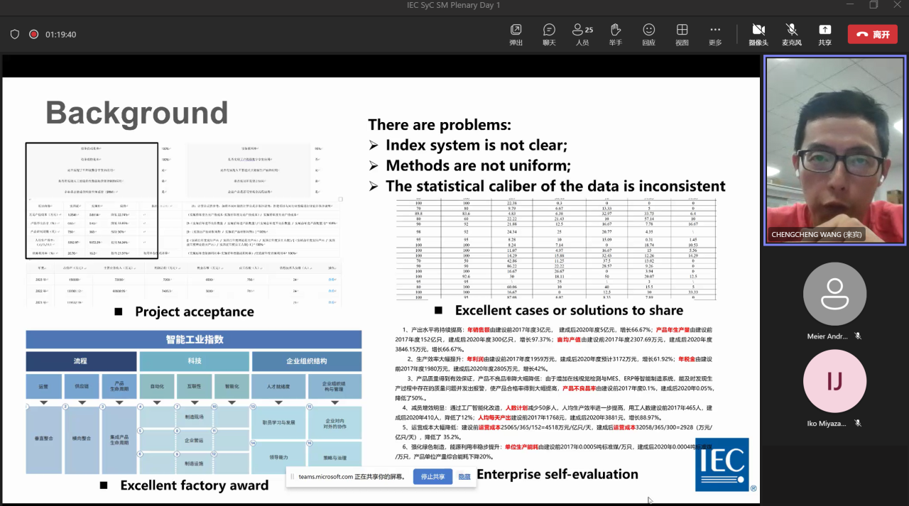 我國近年來積極參與IEC/SyC SM各項工作,深度參與智能制造國際標準體系建設,承擔多個工作組召集人,組織制定智能制造國際標準,取得重要進展。