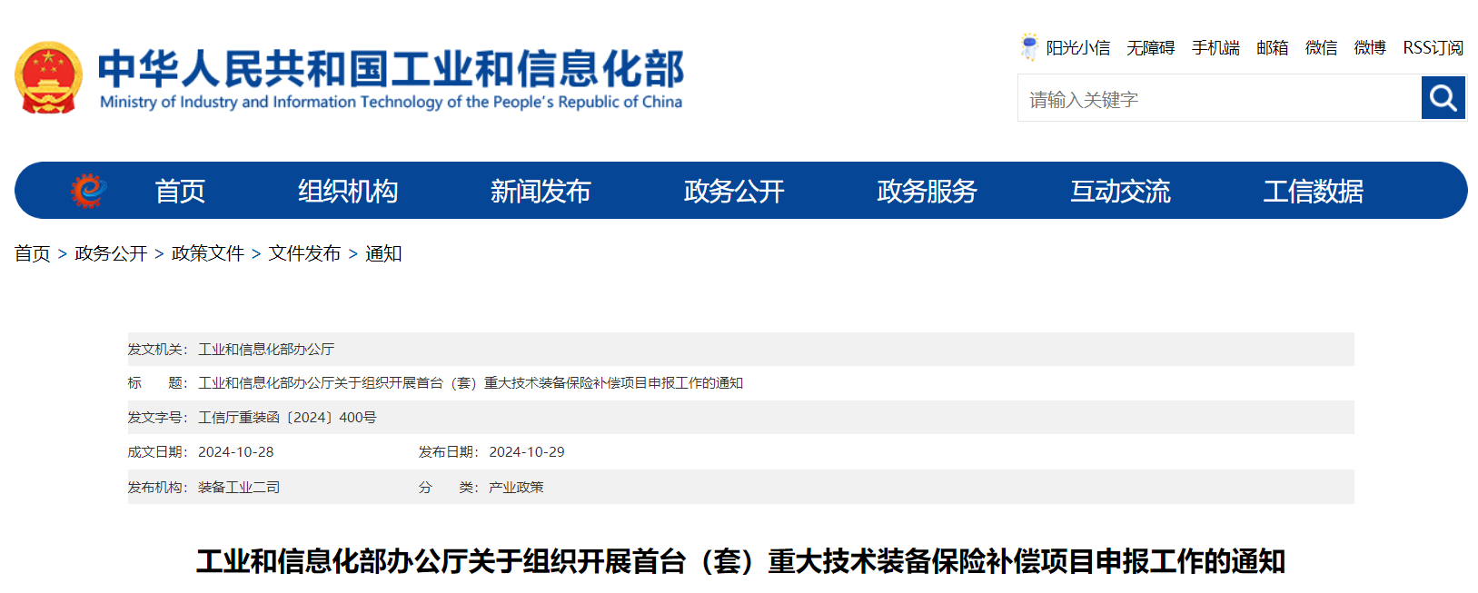 根據(jù)首臺(tái)(套)重大技術(shù)裝備保險(xiǎn)補(bǔ)償政策安排,現(xiàn)組織開展2024年保險(xiǎn)補(bǔ)償項(xiàng)目申報(bào)工作,審核首臺(tái)(套)重大技術(shù)裝備保險(xiǎn)補(bǔ)償資格。有關(guān)事項(xiàng)通知如下: