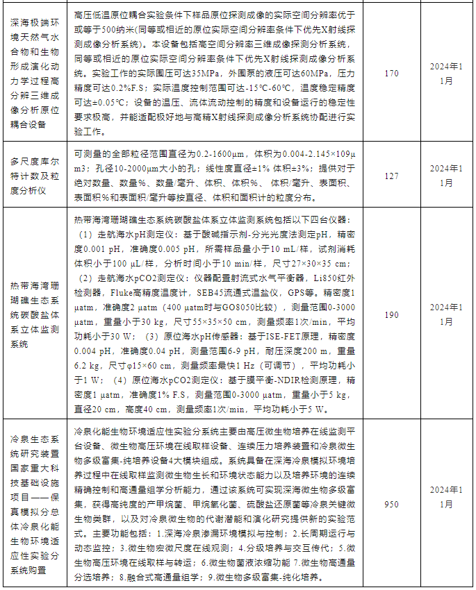 中國科學院南海海洋研究所2024年11~12月儀器設備采購意向匯總表