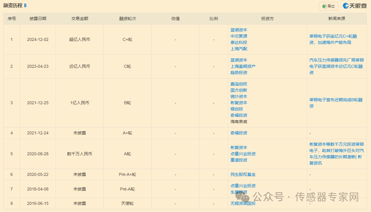 萊頓電子成立于2009年9月,是一家汽車壓力傳感器廠商,專注于壓力傳感器的研發(fā)與制造。經(jīng)過十余年的潛心研發(fā)與市場拓展,該公司已成為中國極少數(shù)掌握涵蓋微壓至超高壓全量程范圍的工藝技術(shù)(厚膜、MEMS、薄膜、硅微熔)并可以自主設(shè)計ASIC芯片的制造商,其產(chǎn)品技術(shù)指標(biāo)處于國際領(lǐng)先水平,生產(chǎn)規(guī)模在國內(nèi)名列前茅。