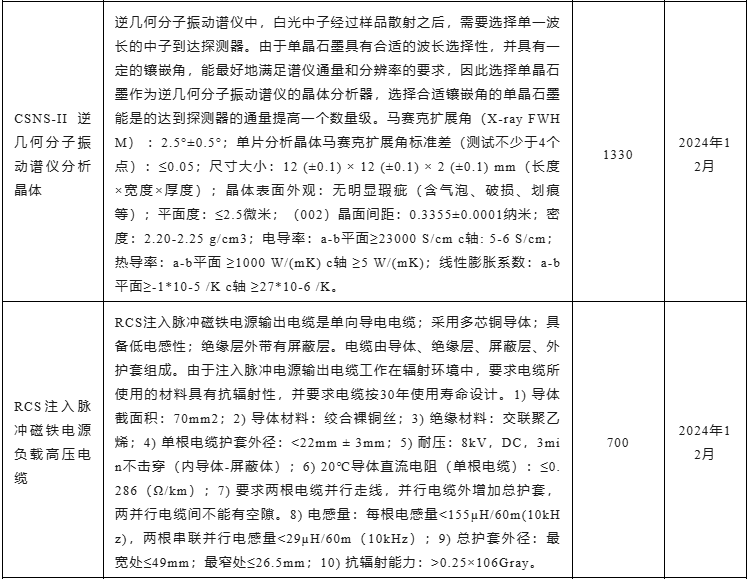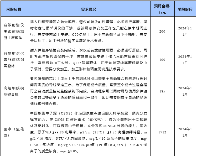 近日,中國科學院高能物理研究所發布25項儀器設備采購意向,預算總額達0.98億元,涉及CSNS-II逆幾何分子振動譜儀分析晶體、高速細線楔形鍵合機、背散射譜儀束線前端鋼屏蔽體、X射線大視場平板成像探測器等,預計采購時間為2024年10月~2025年1月。