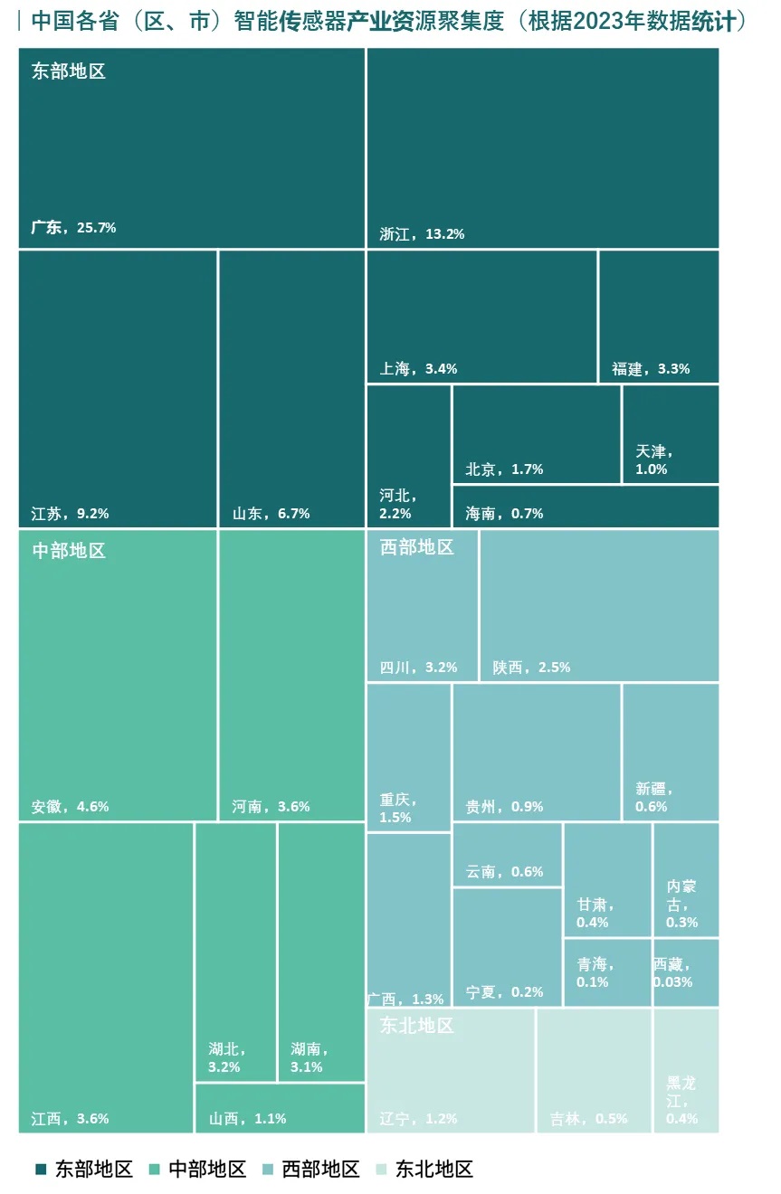 廣東:產業資源占據全國首位,十五五時期將形成以代工為優勢、以應用為引領、上下游協同發展的格局。2022年底廣東建設了國內首條12英寸MEMS智能傳感器晶圓代工產線,并已成功投產。同時,廣東在醫療設備、無人機、智能機器人、新能源汽車等下游應用領域企業資源也較為豐富。預計十五五時期,廣東將依托智能傳感器代工制造優勢,加快推動面向本地下游的行業應用,在智能傳感器產業鏈上下游協同發展方面有望成為全國標桿。