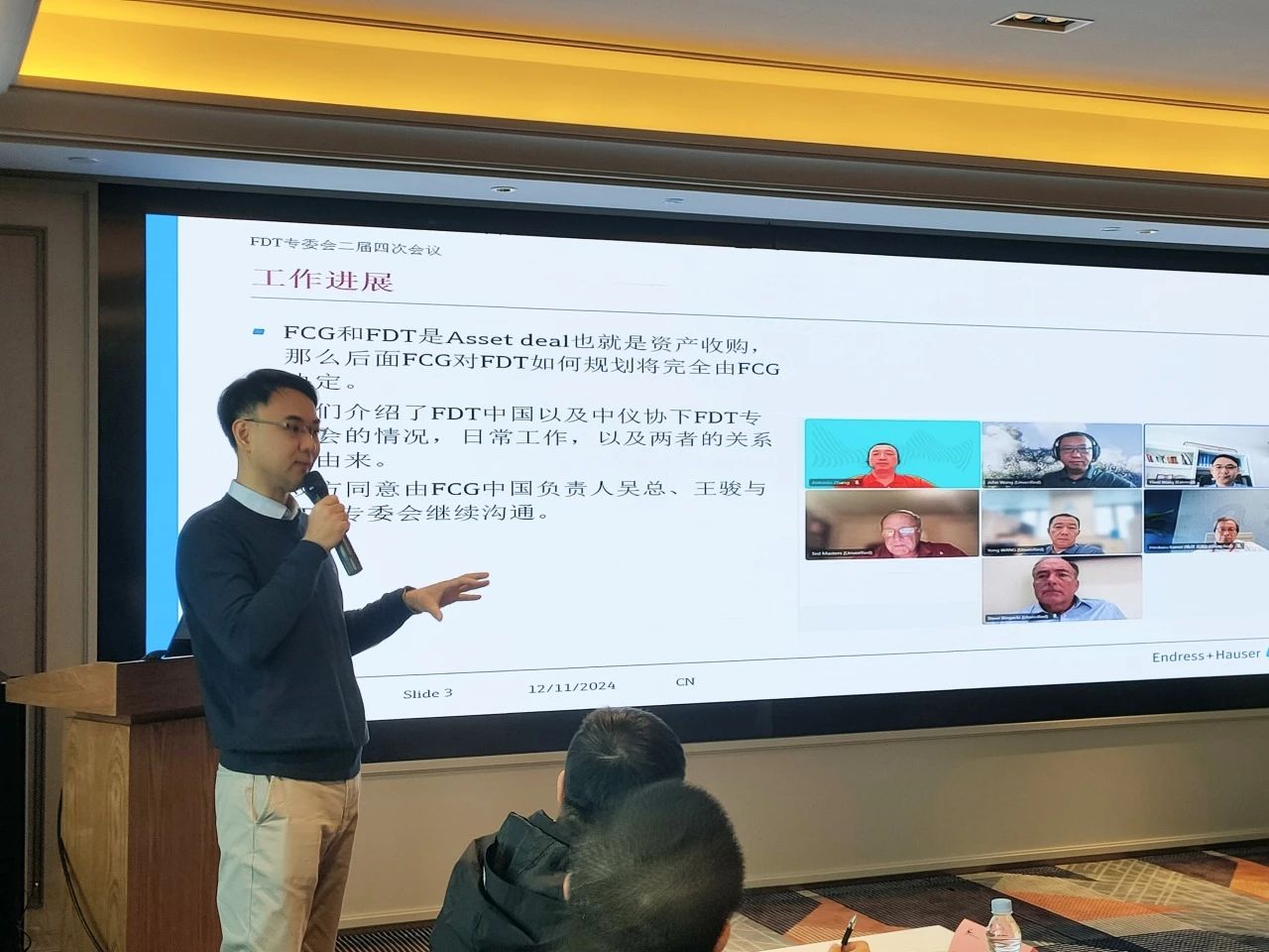 會(huì)議于上午9點(diǎn)準(zhǔn)時(shí)開始,中國(guó)FDT專委會(huì)常務(wù)副主任委員,來自恩德斯豪斯的王奕瑋先生向參加本次會(huì)議的全體代表致歡迎詞,向大家介紹了FDT專委會(huì)在今年下半年與國(guó)際FCG組織的溝通、合作進(jìn)展,以及對(duì)專委會(huì)2025年各項(xiàng)重點(diǎn)工作的初步設(shè)想。隨后進(jìn)行了本次會(huì)議的一項(xiàng)重要提案表決 -- 專委會(huì)委員單位及人員調(diào)整方案:增補(bǔ)章安冬為委員單位美名軟件代表;增補(bǔ)FCG為常委單位,王駿為代表。以上提案經(jīng)現(xiàn)場(chǎng)代表一致通過并立即生效。