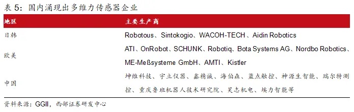 作為機器人的電五官,力傳感器、觸覺傳感器、視覺傳感器等眾多傳感器是人形機器人實現外界感知的基礎。