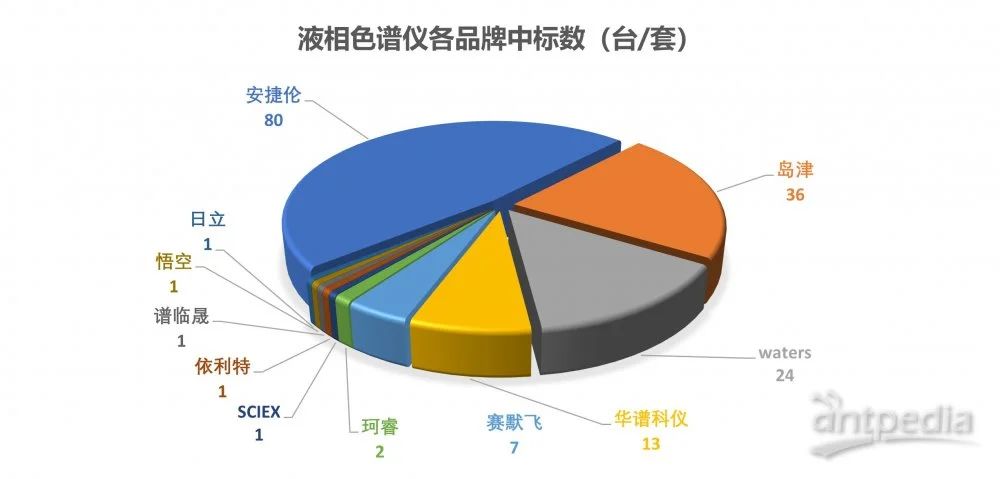 在品牌競爭的激烈角逐中,安捷倫憑借強大的技術(shù)優(yōu)勢和卓越的品牌影響力,成為本次設(shè)備更新的最大贏家,其中標(biāo)數(shù)量接近總量的一半。島津和Waters分別以36臺(套)和24臺(套)的中標(biāo)數(shù)量,位列第二和第三。