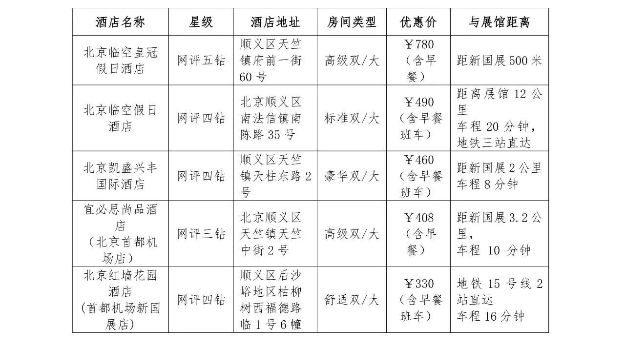 (以下酒店是中國國際展覽中心附近酒店,您可自行打電話預定酒店)