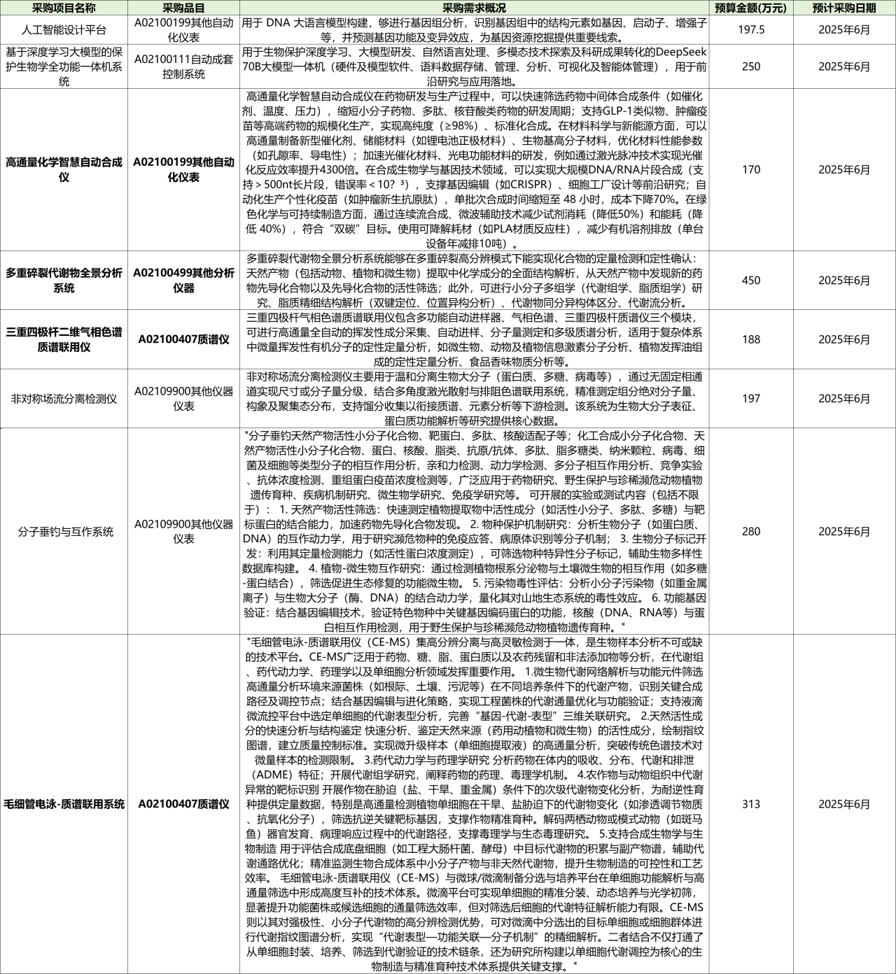 據(jù)中國政府采購網(wǎng)消息,近日,中科院成都生物研究所發(fā)布多個2025年4至12月政府采購意向,計劃采購時間均為2025年6月份。