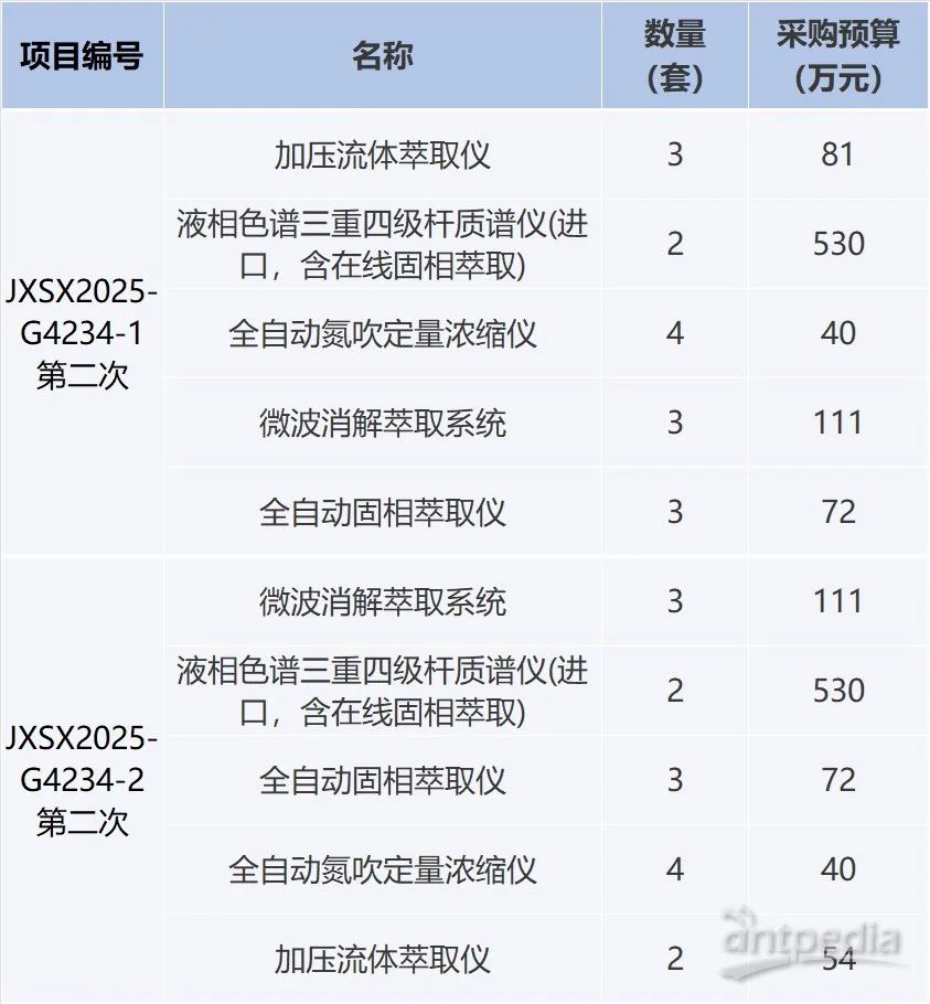 近日,江西省生態環境監測中心就“監測能力建設(二期)項目”新污染物調查監測能力采購項目進行二次招標,此次共招標29套設備,包含多套液相色譜三重四級桿質譜儀、微波消解萃取系統等,采購預算1641萬元。本次招標提交投標文件截止時間為2025年07月10日 09點30分。