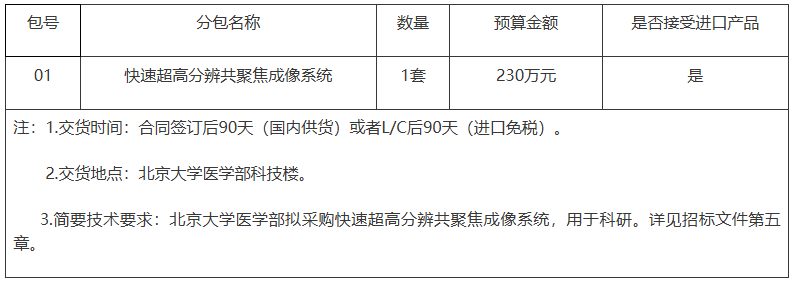 項目名稱:北京大學醫學部快速超高分辨共聚焦成像系統采購項目