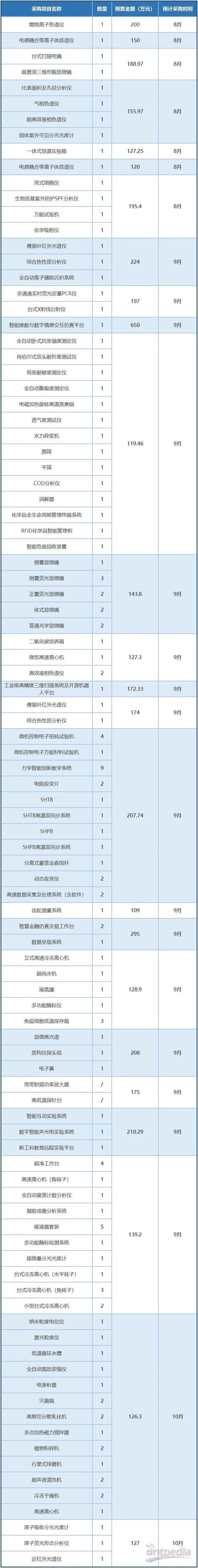華南理工大學(xué)近期公布多批政府采購意向,計(jì)劃在8月至10月采購燃燒離子色譜儀、電感耦合等離子體質(zhì)譜儀、臺式掃描電鏡等130余種儀器設(shè)備,用于教學(xué)、科研等工作,預(yù)算金額達(dá)4671.91萬元。