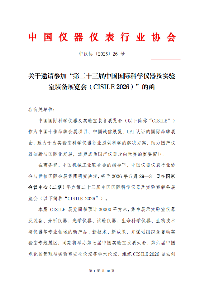 關(guān)于邀請參加“第二十三屆中國國際科學(xué)儀器及實(shí)驗(yàn)室裝