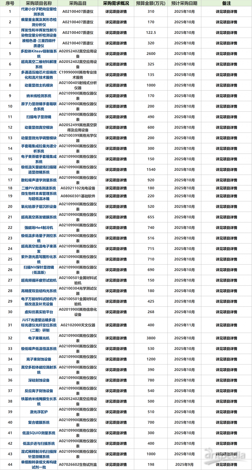 中國政府采購網(wǎng)消息,近日,上海交通大學連續(xù)發(fā)布2025年度9月、10月及11月政府采購意向。內(nèi)容顯示,該批次采購意向采購標的涵蓋多類科研儀器設備及專業(yè)技術服務,包括代謝小分子靶向定量檢測系統(tǒng)、液相色譜 -三重四級桿質(zhì)譜儀、極低溫矢量磁場掃描隧道顯微鏡系統(tǒng)等。公開信息顯示,該批次采購預算總金額達到2.67億元,采購日期方面,除“單細胞轉(zhuǎn)錄組文庫構建試劑一批”及“JUST光譜望遠鏡多目標光譜儀光纖定位系統(tǒng)(二期)研制”將于9月和11月采購之外,其余項目均將于10月份進行采購。具體信息已項目相關采購公告和采購文件為準。