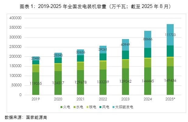 “十四五”火電裝機規模穩步提升。2019年全國發電裝機容量20.1億千瓦,到20258月已超過36億千瓦,其中增量最大的是太陽能發電接近10億千瓦。而火電裝機也保持了穩步提升,從2019年的11.9億千瓦,增加到20258月的14.9億千瓦。