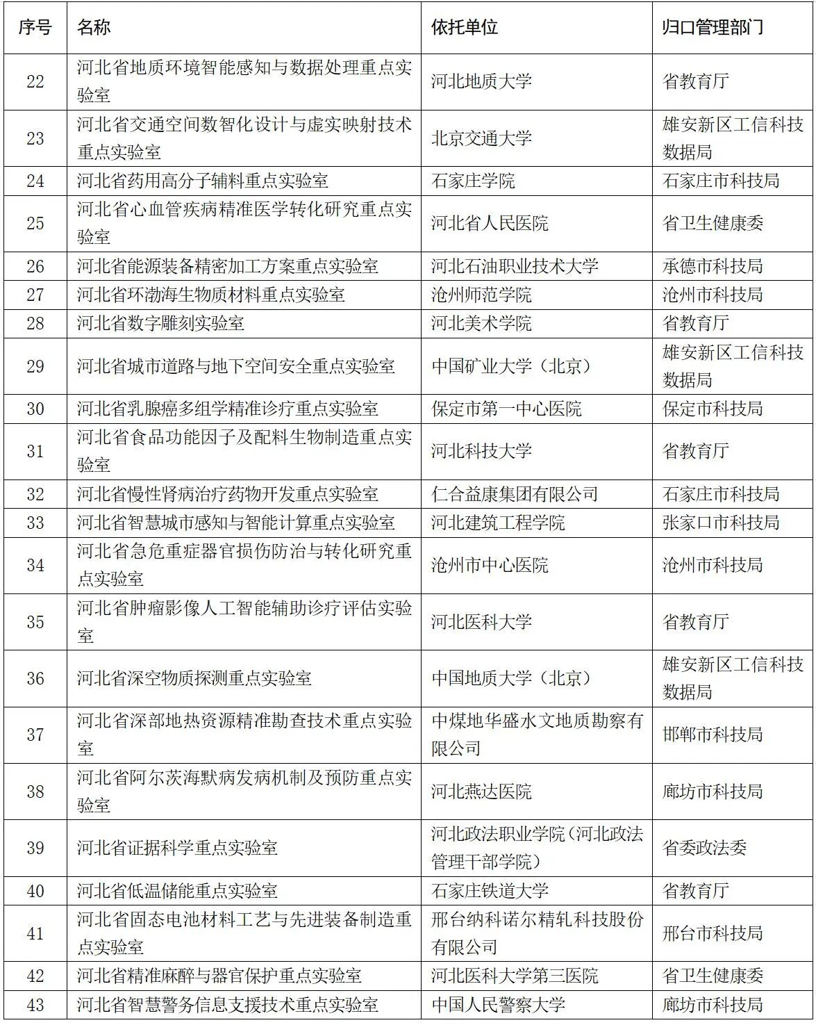 河北省科學技術廳關于公布2025年新建省重點實驗室和省技術創新中心名單的通知