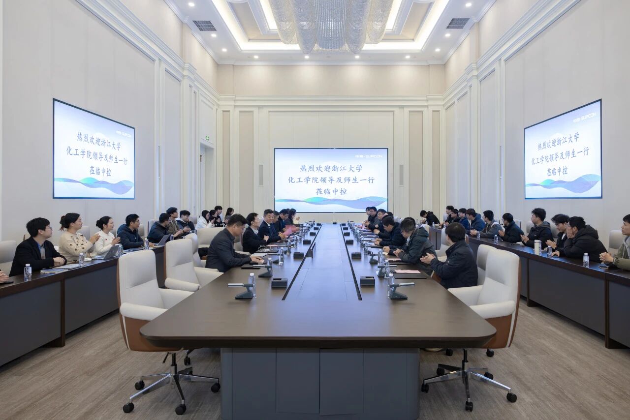 浙大化工學院副院長鮑宗必、要輝,黨委副書記、紀委書記廉潔攜師生代表到訪;中控技術高級副總裁俞海斌,副總裁吳玉成、余晶鑫等領導出席。雙方圍繞AI驅動化工行業轉型升級、關鍵核心技術攻關及產業化落地應用等議題展開了深入探討。