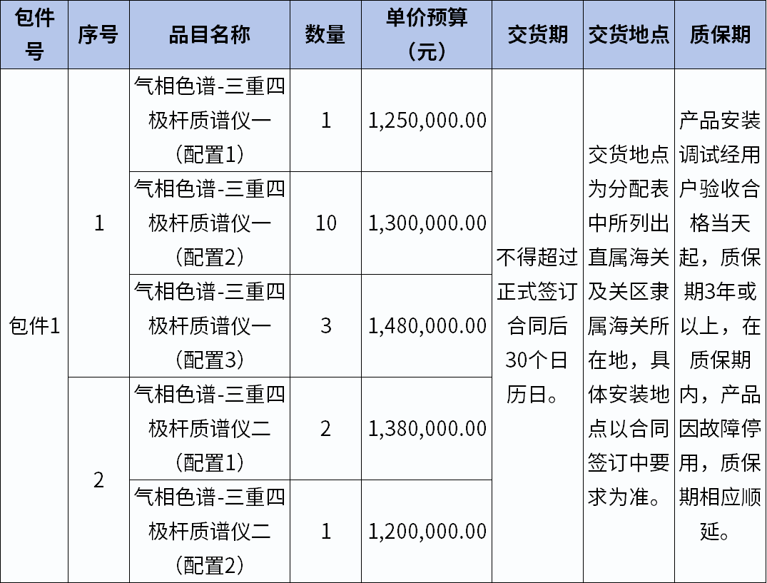 項(xiàng)目名稱: 海關(guān)總署2025年氣相色譜-三重四極桿質(zhì)譜儀(第一批)采購項(xiàng)目(重新招標(biāo))