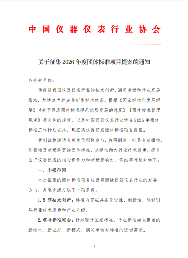 關于征集2026年度團體標準項目提案的通知