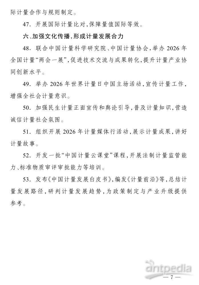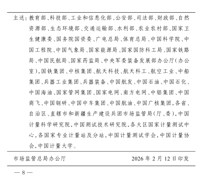 2026年,全國計(jì)量工作主要圍繞六個(gè)方面開展:聚焦規(guī)劃落實(shí),完善計(jì)量頂層設(shè)計(jì);加強(qiáng)基礎(chǔ)建設(shè),提升計(jì)量保障能力;創(chuàng)新監(jiān)管模式,守牢計(jì)量公正底線;圍繞戰(zhàn)略需求,優(yōu)化計(jì)量服務(wù)支撐;深化國際合作,推動計(jì)量高水平對外開放;加強(qiáng)文化傳播,形成計(jì)量發(fā)展合力。具體包括推進(jìn)計(jì)量法修訂,圍繞新技術(shù)、新產(chǎn)業(yè)、新業(yè)態(tài)建設(shè)一批計(jì)量技術(shù)委員會等內(nèi)容。