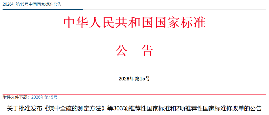 關(guān)于批準(zhǔn)發(fā)布《煤中全硫的測定方法》等303項推薦性國家標(biāo)準(zhǔn)和2項推薦性國家標(biāo)準(zhǔn)修改單的公告